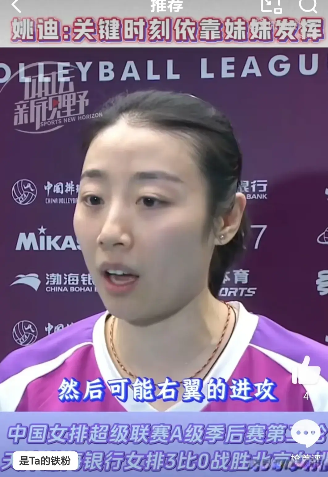 天津女排3-0北京女排,姚迪赛后谈:我觉得关键时刻还是主要是妹妹(李盈莹)的发挥。因为今天可能陈博雅在被王梦洁防的比较多,然后可能右翼的进攻不是特别的顺畅,然后包括我们的副攻,第一局其实打的很少,到后面媛媛一点才打开。因为我觉得第二阶段之后,队伍还是越来越强了,我们在场上遇到打不死的情况,我们还是要自己有耐心的情况下,还不能放弃。